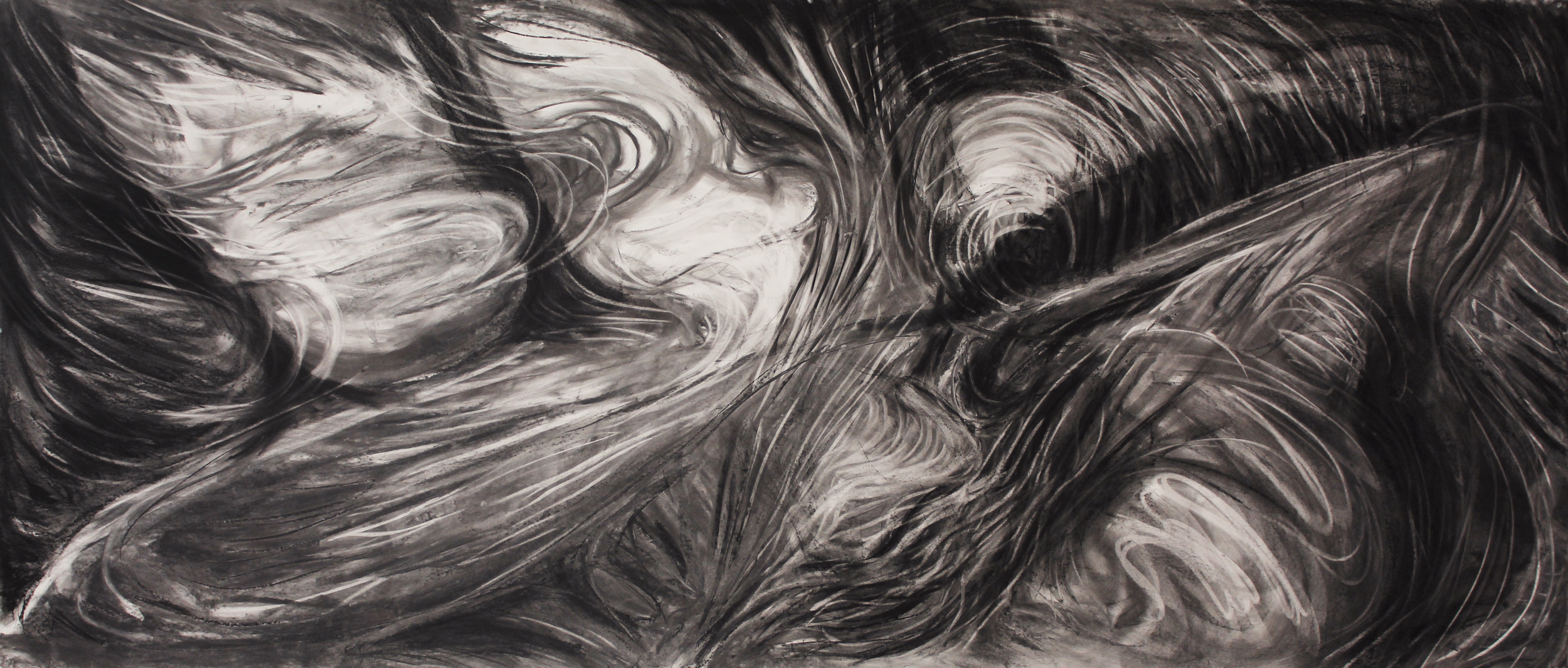 The seemingly sporadic, yet driven textural gestures in Pinilla’s paintings provide a movement that suggests the natural flow of water on Earth. It speaks to a calmness that we feel when experiencing the simple pleasures of the landscape.
